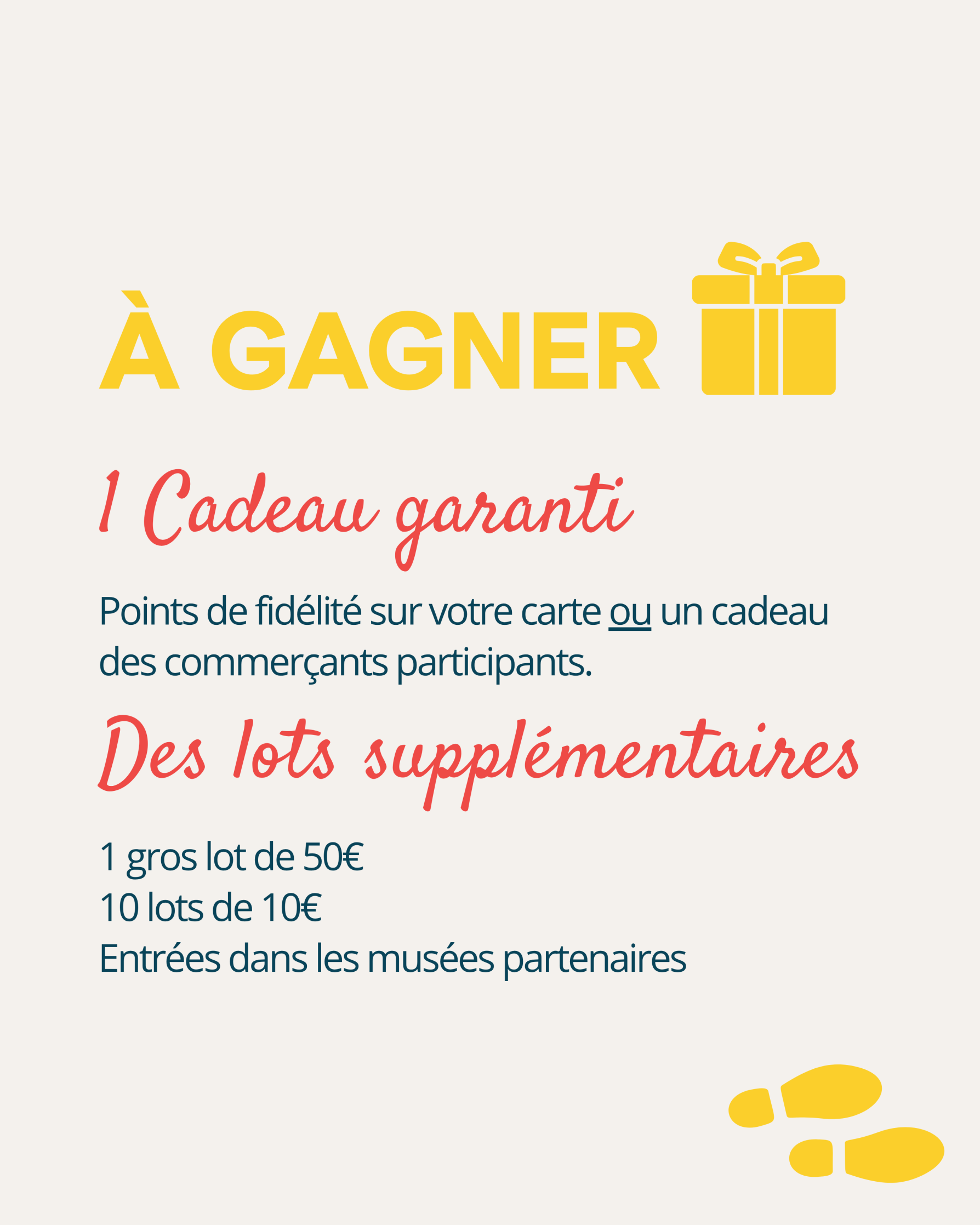 - Un cadeau garanti pour tous les participants : points fidélité ou cadeaux offerts par vos commerçants participants.