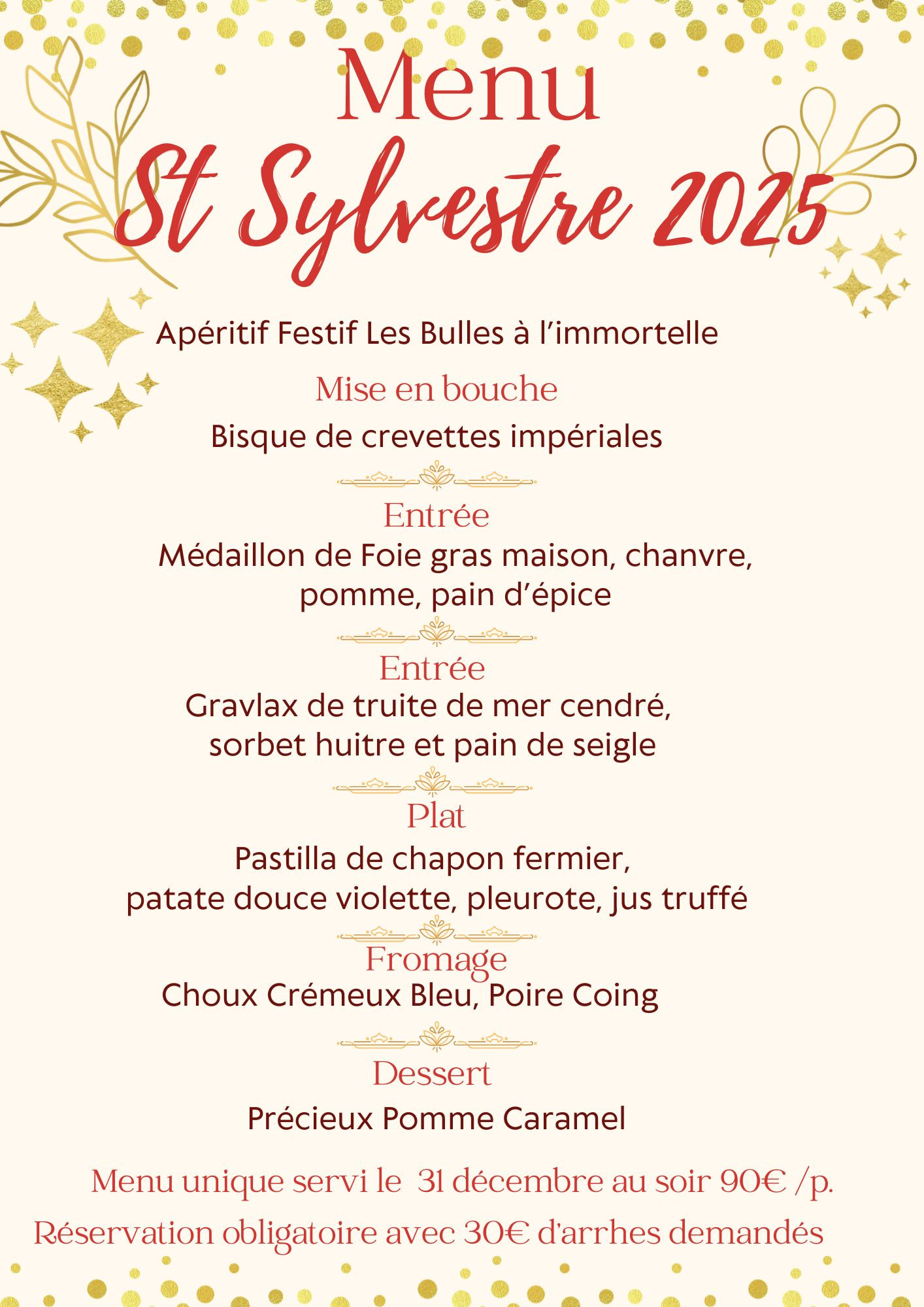 🔸 Ouvert le 31 décembre avec un menu unique spécial Réveillon