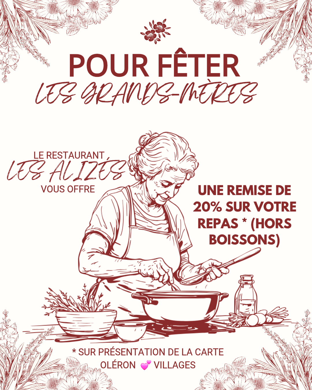 Pour célébrer ces femmes extraordinaires qui ont rempli nos vies d’amour et de souvenirs, Les Alizés vous invite à partager un moment précieux en famille 👵❤️